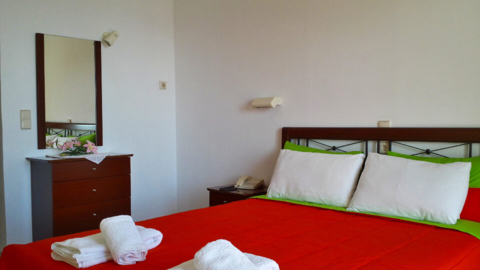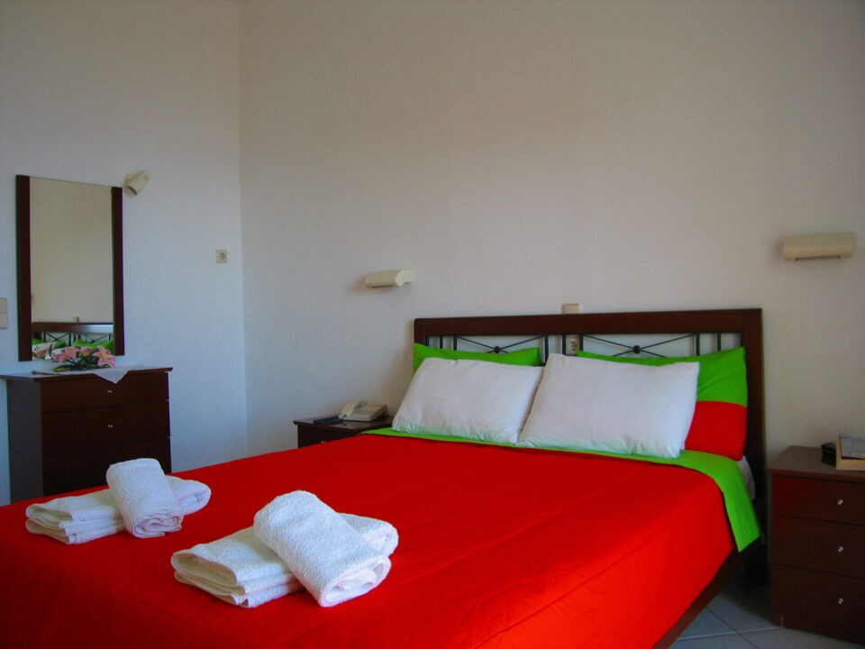 Each studio has a bedroom (with a double bed ) with integrated kitchenette (the third extra bed is a normal sized bed for a child and even for an Adult), shower/WC, satellite Plasma TV(32 in.), air conditioning ,Safe box, Hair Dryer and balcony with sea view. Each Apartment is for a family of 4 persons .Each apartment offer a separate bedroom (with double bed), a separate living room with a sofa NORMAL SIDE DOUBLE BED and integrated kitchenette with shower/WC, satellite TV, DOUBLE air conditioning (One A/C in each room)and balcony with sea view. Some Studios and apartments are situated on ground floor(With sea views But Not the best sea view) and some Studios apartments are situated in Upper floor (With the Best sea views) and also have different prices .