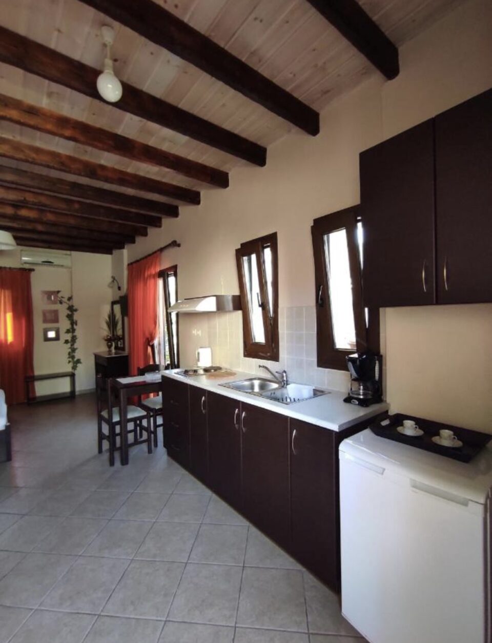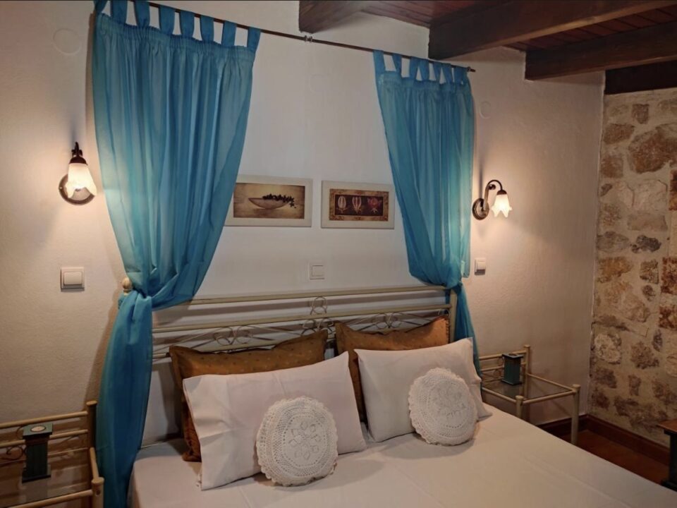 The (PLAKERO 1 & 2 in Greek)Flag Stone 1 and Flag stone 2, are 2 large Studios which have been named after the flag stones which were used by the owners in the 18th century in order to construct the entrance of the building. The 2 large Studios, used to be the 2 bedrooms of the older children of the owner. Now, each large Studio consists of 28 square meters and offers a bedroom with a fully furnished kitchen with nice decoration a private bathroom, air-conditioning, Wi-Fi Internet, safe box and Plasma television. Each large Studio is comfortable and can sleep 2 persons. In case there is a child, we can add an extra bed in the two Plakero Studios. THE SEPARATE (HOUSE) .Next to Epavli Veneti and since 2015 ,there is a large apartment/House for 4/5 persons(with 2 separate bedrooms(One with a double bed and the other with 2 single beds) a separate kitchen with living room and 1 sofa bed(full renovated)for a family Χ 4/5 persons. The price for the large family apartment is the same price as the price for CAMARA APARTMENT and for 4 persons