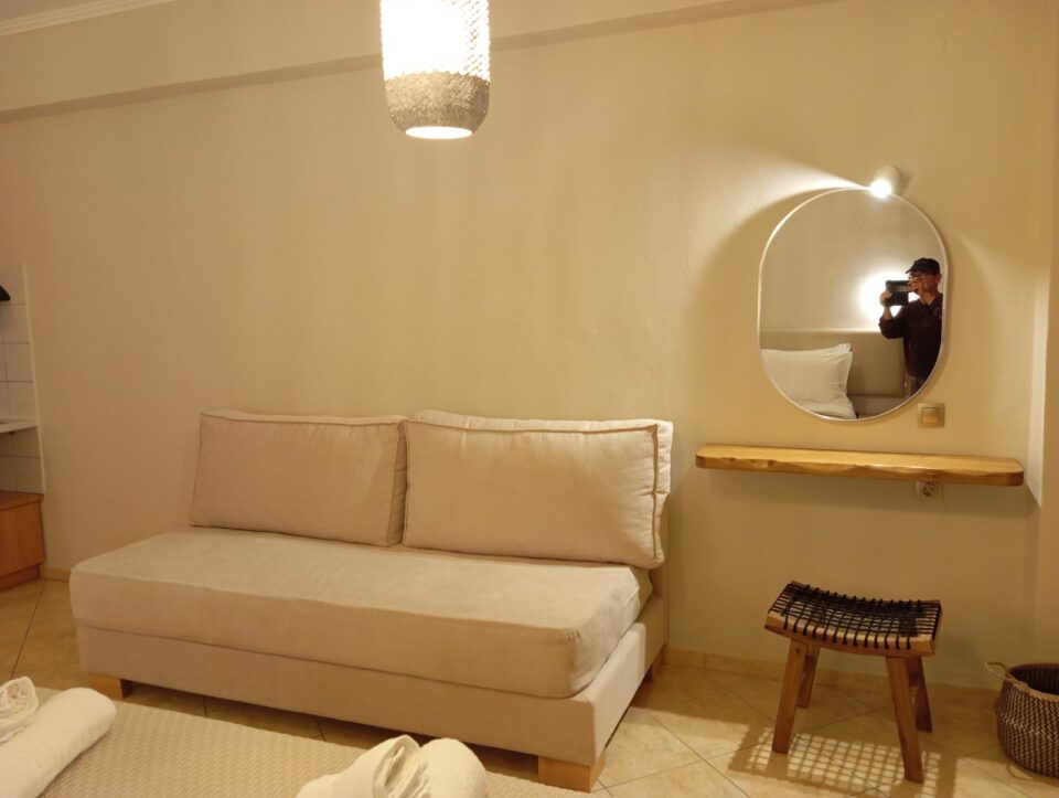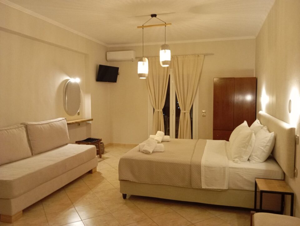 These spacious Studios built in 2007 and 2009 and fully renovated in 2025 with high standards. Family Villa is situated only 350 meters walking distance from the sandy beautiful(Valtos beach) ,in a quiet and green area (Valtos area), among olive trees. Studios can sleep 2-3 persons. Only 2 of the Studios can sleep a family X 3 persons and 2 Studios can sleep(2 persons)a couple or 2 friends for a couple. All Studios offer a nice view to the olive groves and they offer a partly sea view . All large Studios (are well equipped). Each Studio is ideal for a couple or 2/3 friends and also for families x 3 with one child. This small friendly family accommodation offer a large garden with trees (lemon oranges e.c.t and with a lot of different kind of flowers and space outside and parking). The place is ideal for those they like to make walks in the area, and to stay in a quiet place in nature far from noises and traffic. Each Studio is a self catering accommodation and offer , a bedroom (with one double bed and one sofa extra bed for a child), kitchenette, private bathroom, air-conditioning, television ,Hair dryer. This is an Ideal accommodation for guests they prefer something fully renovated , very clean, nice and with high quality accommodation in a quiet spot of Parga (Valtos area) with parking for the car .Villa offers a real friendly Greek ambient. The accommodation offer as well a private parking and a common Barbeque for all guests.(Guests must ask always the Owners to use it). Near by approximately in 300 meters away ,there are restaurants ,cafés, Minimarkets .Also you have the possibility to explore the area with nice walking in the pure nature and for those they like to walk, there are two Paths for walking .One path to Parga (Through the olive groves) and walking distance (2 kilometer).Τhe second path is up to Anthoussa village (Through the olive groves ,orange and lemon trees and also via the famous water mills).This walking path is approximately 2,5 kilometers.